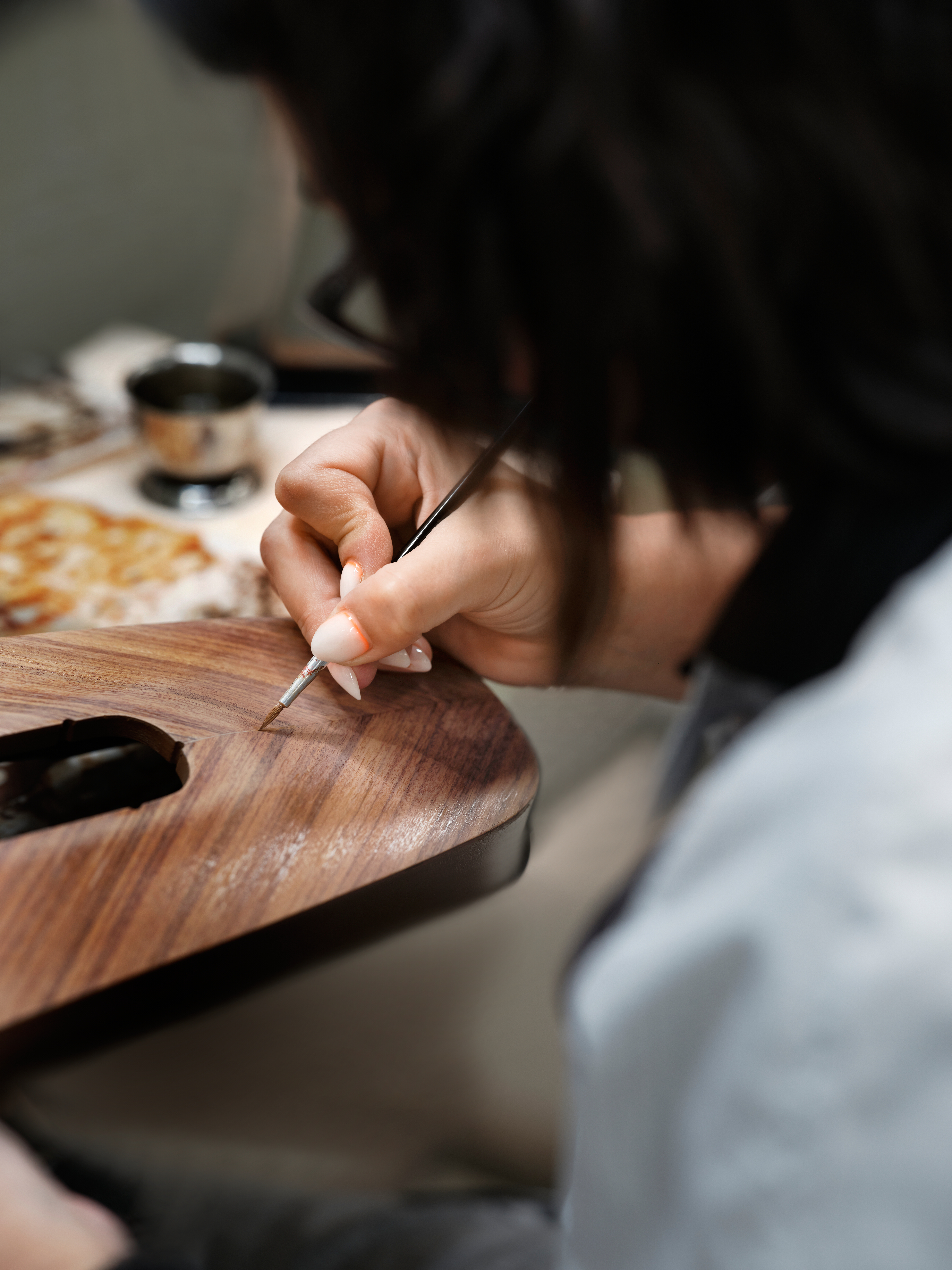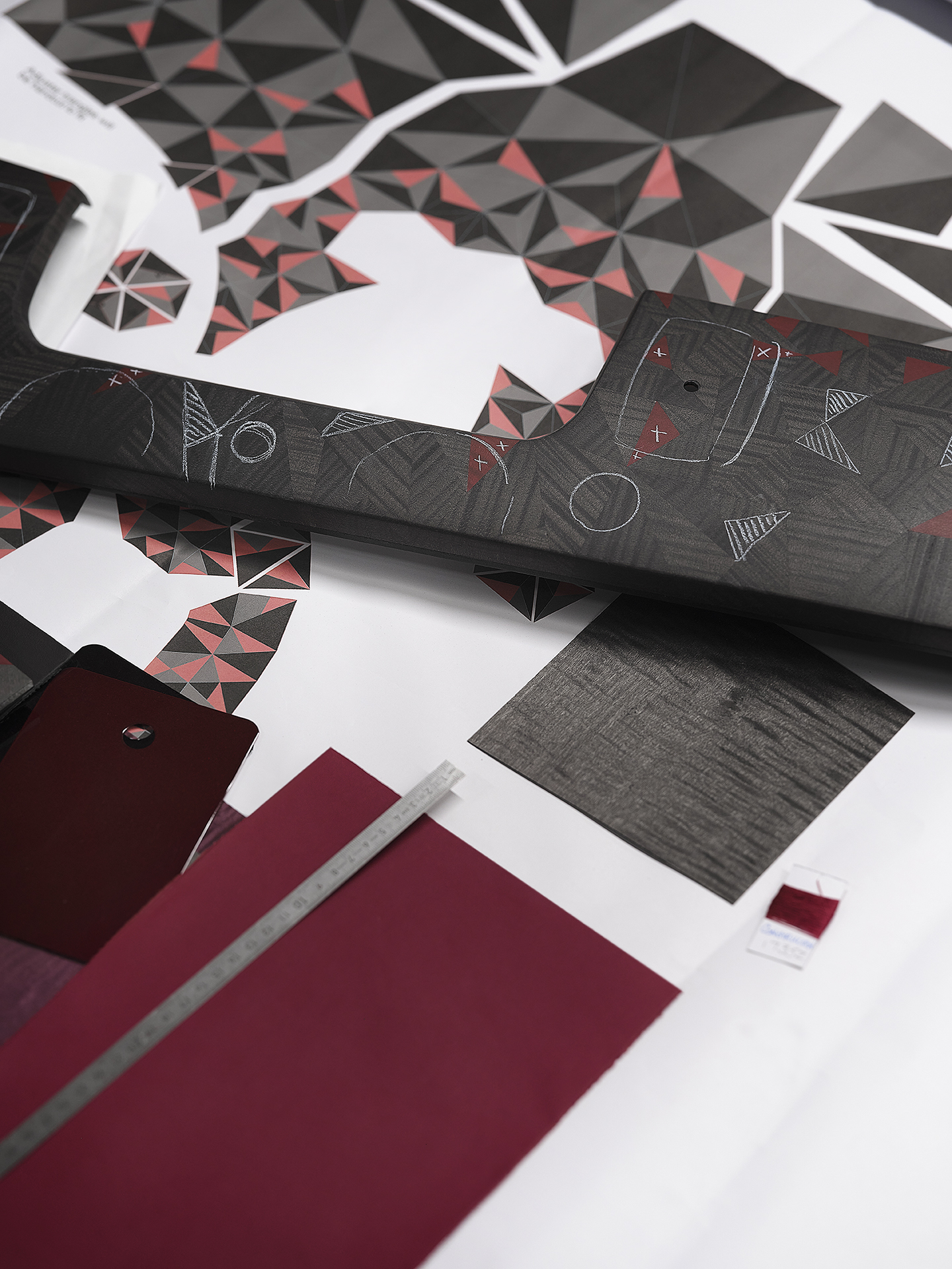 Each of the four Droptails tells its own story. The La Rose Noire Droptail was inspired by the black baccara rose. A flower known for its mysterious, deep hue and romantic symbolism. Its interior features a mosaic of 1,600 black and red wood pieces, individually placed and lacquered to resemble petals in bloom. This car celebrates passion, romance, and personal history in a way no other vehicle could.